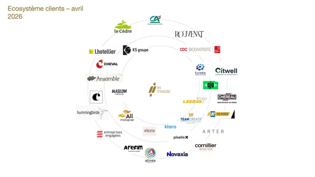 IN ITINERE conduit ses activités en interaction avec un écosystème de chercheurs et universitaires parmi lesquels : la Chaire de l’école des Mines (Théorie de l’Entreprise et modèles innovants – Armand Hatchuel, Kevin Levillain, Blanche Segrestin…), IAE de Nantes (Mathieu Detchessahar), Paris Dauphine/AgroParisTech (Alexandre Rambaud), EM Lyon et IFGE (Pierre Yves Gomez, Bertrand Valiorgue), Sciences Po Lille master Management Responsable des Entreprises (Matthieu Caron, Philippe Liger Belair), ANVIE, CEM (Communauté des Entreprises à Mission), etc…